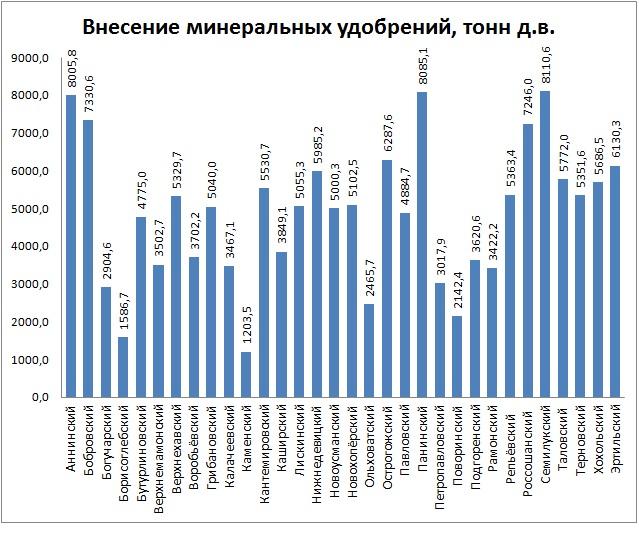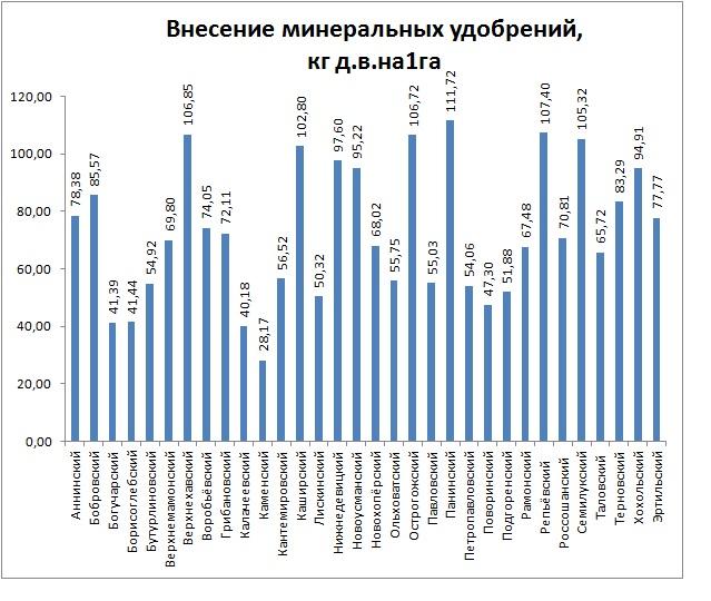 Ниже представлена информация о фактическом внесении минеральных и органических удобрений на 22.12.2014 по районам Воронежской области: